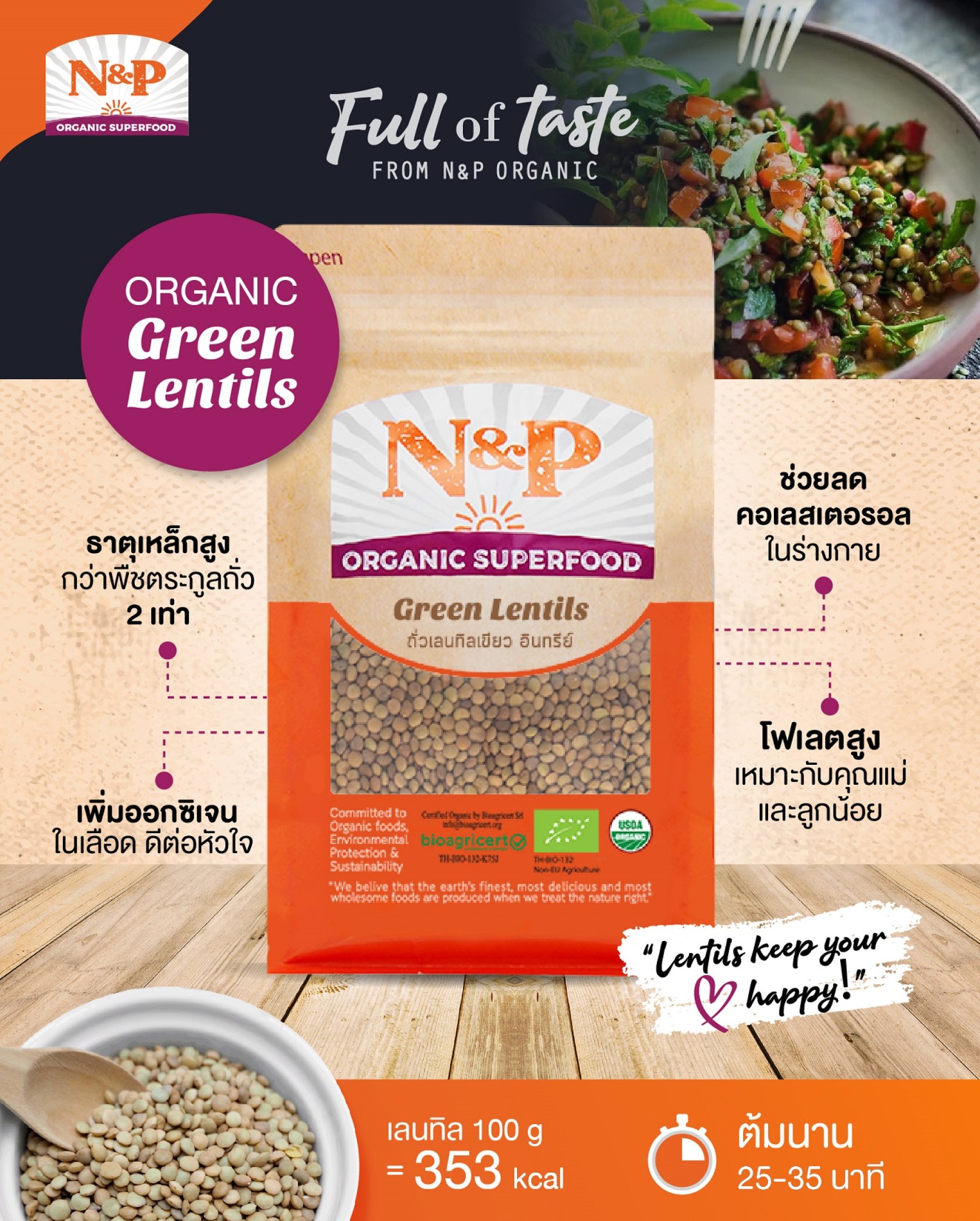 มีคำกล่าวที่ว่า “Lentil keeps your heart happy!”